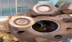 拆解之后很明显的能够看出,其内部出现了明显的残损。阀座部分底部与阀芯接触面已有明显的几个创面随后将其磨损部分进行研磨处理和更换新的配件。