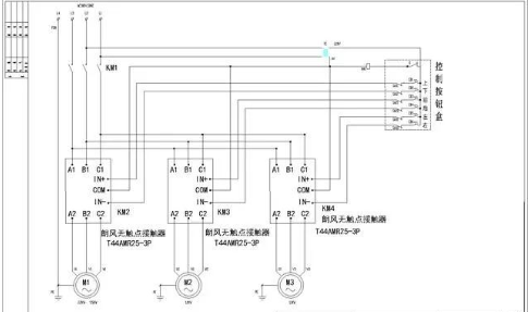 针对这一情况,目前很多高端电动葫芦采用了无触点换向接触器,电路图如下。